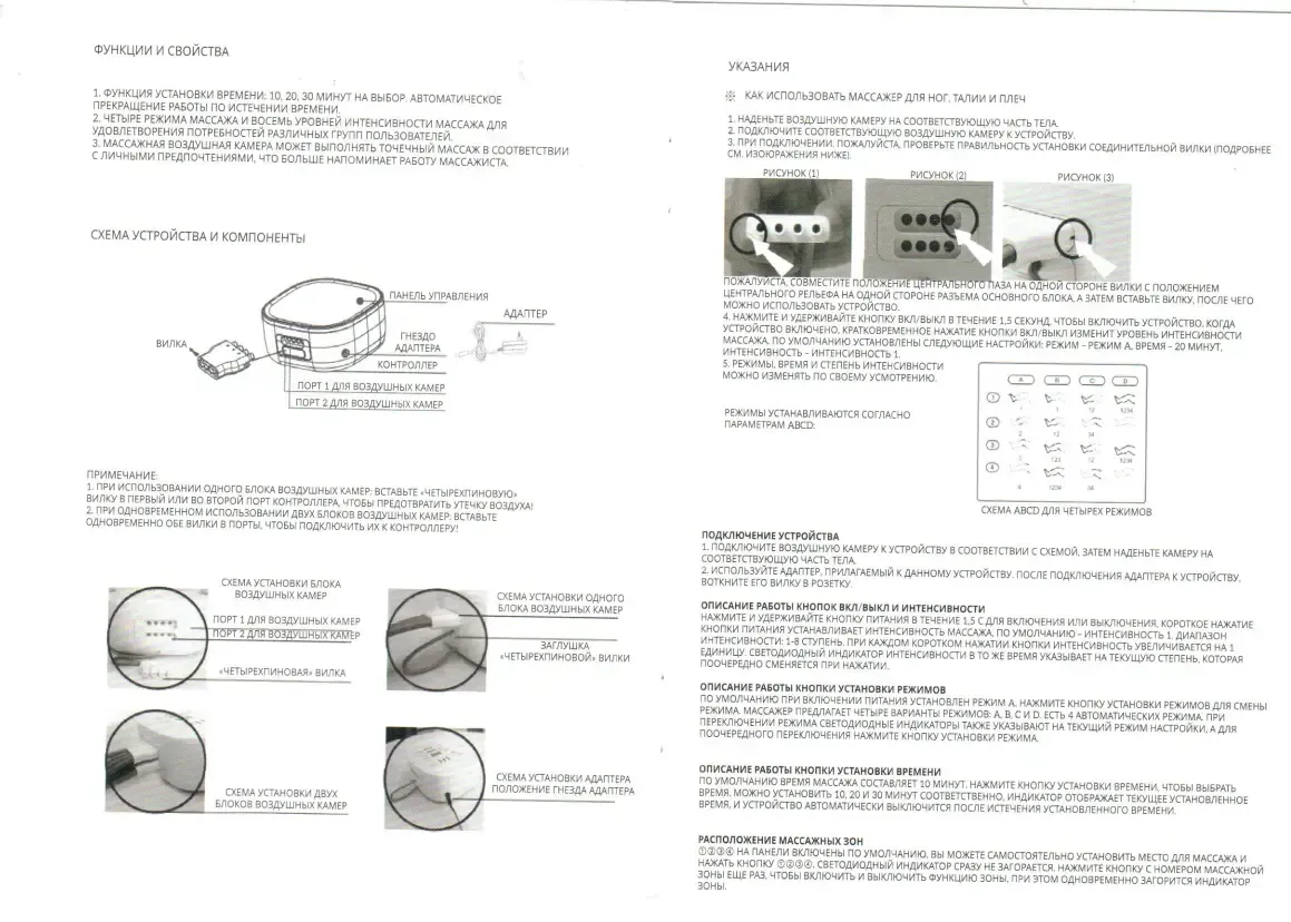 - КомплектацияБлок управления, манжета для ног - 2шт, блок питания, инструкция